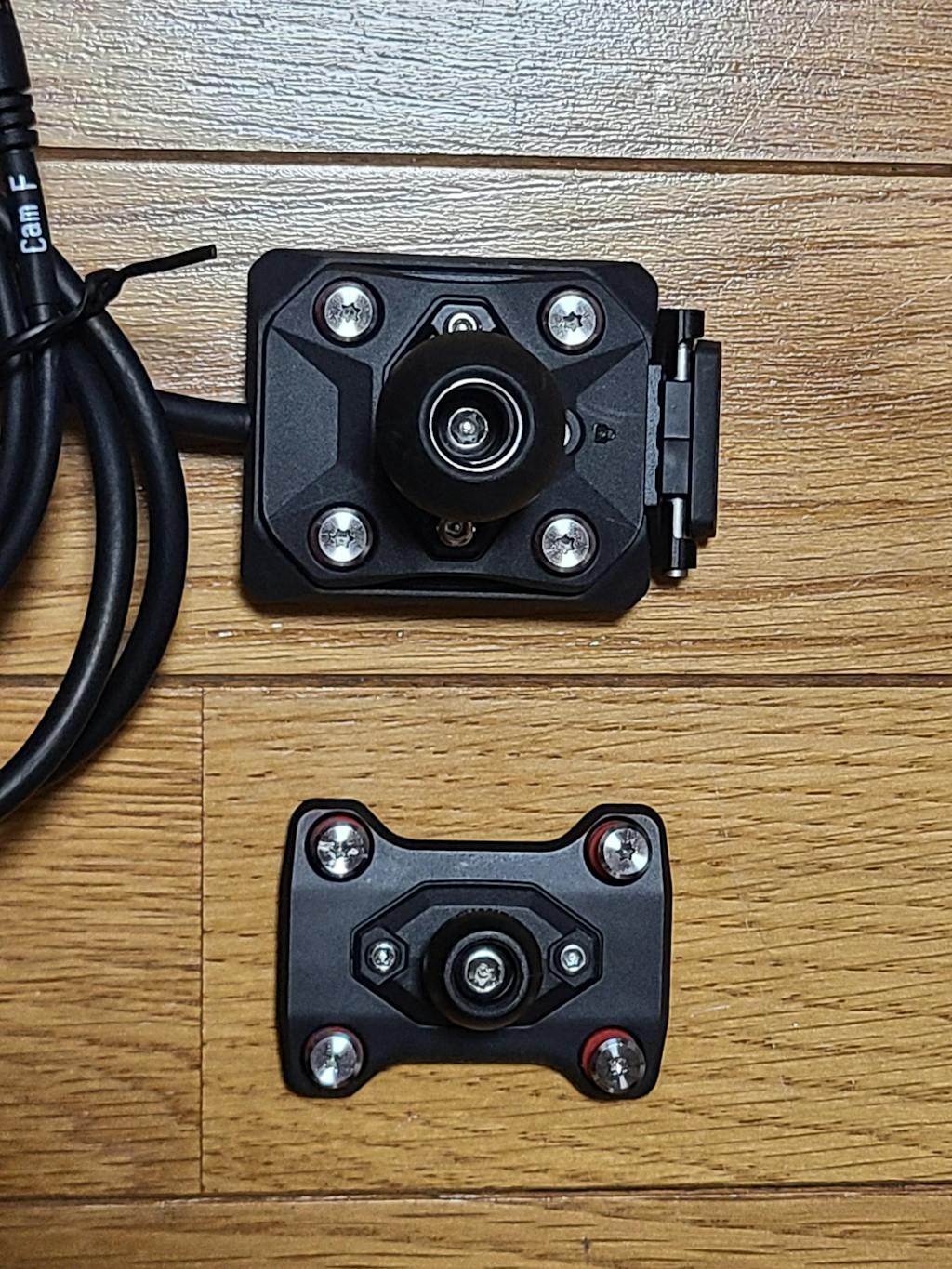 リアカメラが防水なのでハイゼットトラックの後方ナンバープレート上に取付ました。バックランプ+へ結線して、ギアをRに入れるとリアの映像に切り替わります。トラックは荷物によってルームミラーが見えなくなるので、リア映像が映って便利です。モニターにバックのラインが映りますが、あくまで参考ですね。GPSシガーコードも同時購入で時計合わせ不要で位置の記録もできます。良い買い物できました。