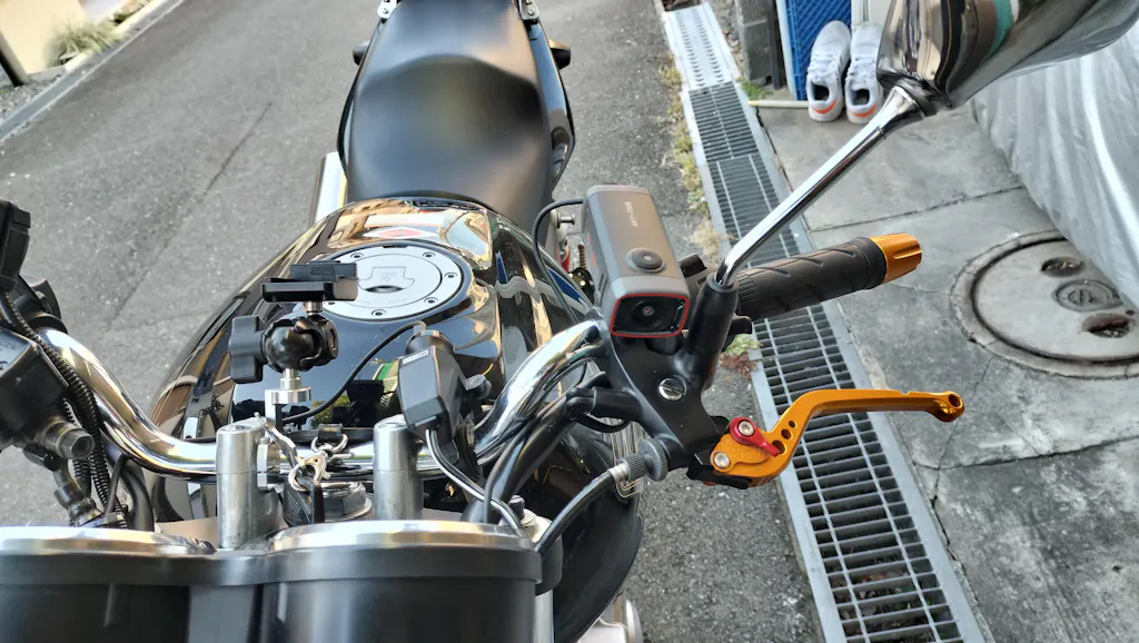 ハンドルマウントにスッキリ見やすい位置でした…